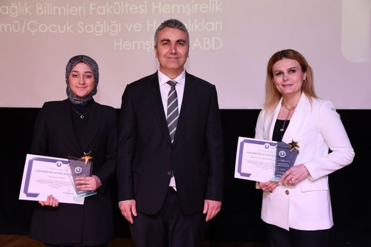 Fakültemiz Dekan Vekili Sayın Prof. Dr. Dilek Küçük Alemdar danışmanlığında, Üniversitemiz Sağlık Bilimleri Enstitüsü Hemşirelik Anabilim Dalı Tezli Yüksek Lisans Programı mezunu Uzman Hemşire Dilara Cengiz’in yüksek lisans tezi “Lisansüstü En İyi Tez Ödülü” kategorisinde ödül almıştır. Fizyoterapi ve Rehabilitasyon Bölüm Başkanı Sayın Doç. Dr. Sevim Acaröz “Yılın Proje Ödülü”, Hemşirelik Bölümü Öğretim Üyesi Doç. Dr. Hanife Durgun “Yılın İş Birliği Ödülü”,Beslenme ve Diyetetik Bölümü öğretim üyesi Dr. Öğr. Üyesi Emine Koçyiğit “Yılın Makalesi Ödülü” kategorisinde ödül almıştır.